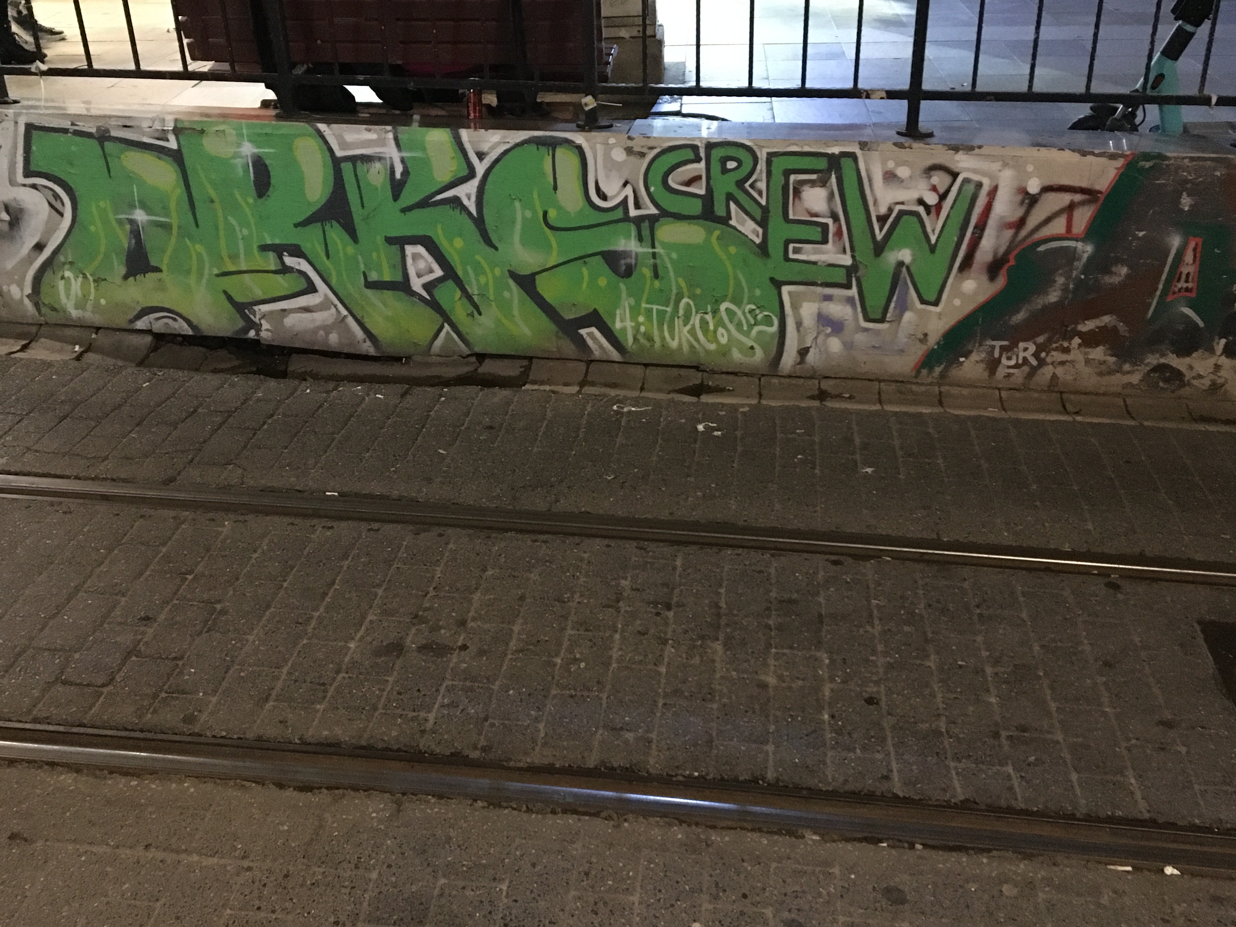 Altıyol durağına yaklaşırken tramvay yolunun iki yanındaki duvar yazıları gözüme çarpıyor birden.